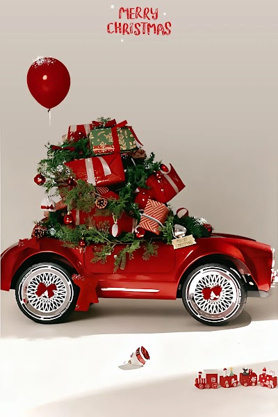 PSD Xe hơi đỏ giáng sinh dễ thương ghép ảnh baby