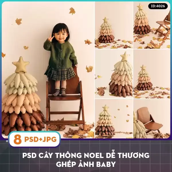 DHV181 – PSD cây thông noel dễ thương ghép ảnh baby
